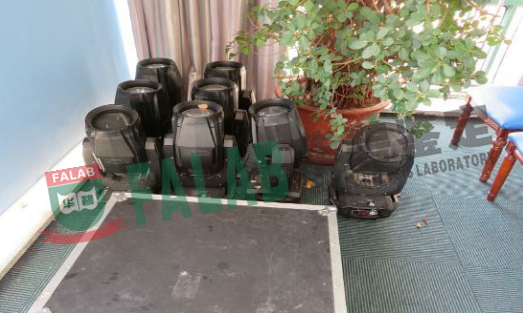 青岛某学校学生进行艺术节彩排活动,期间发生了人员烧伤事故,受害学生胡某后背衣服着火,现场发现有涉案光束灯8盏。为查明光束设备是否直接导致了学生的受伤,青岛市某区人民法院特委托我单位对相关光束设备进行鉴定。